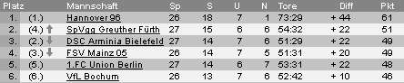 ihn so an: der Vertrag für die erste Liga? Das lässt hoffen für dienächsten Wochen...Kurios: ausgerechnet ein Absteiger ist bisher die erste Mannschaft dieser genialen 96-Saison, die von uns nicht besiegt werden